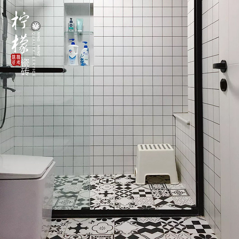Nordic black and white flower brick 300X300 floor tile bathroom toilet kitchen toilet wall brick balcony anti-slip tile mix