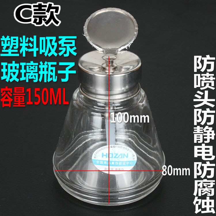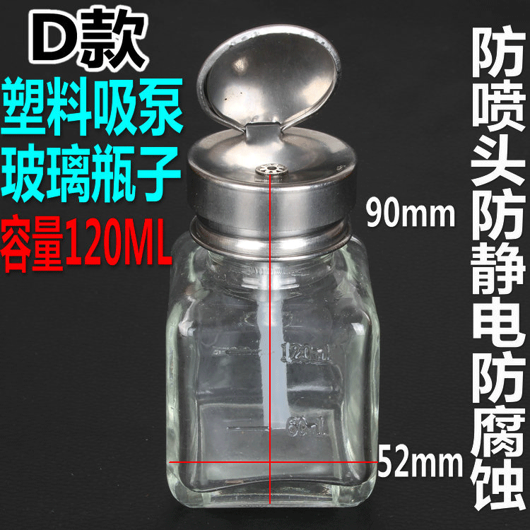 Thickened press-mounted glass alcohol bottle Anti-corrosion washed plate water bottle automatically discharged by action bottle cap