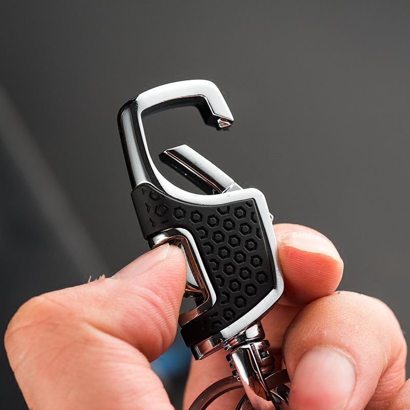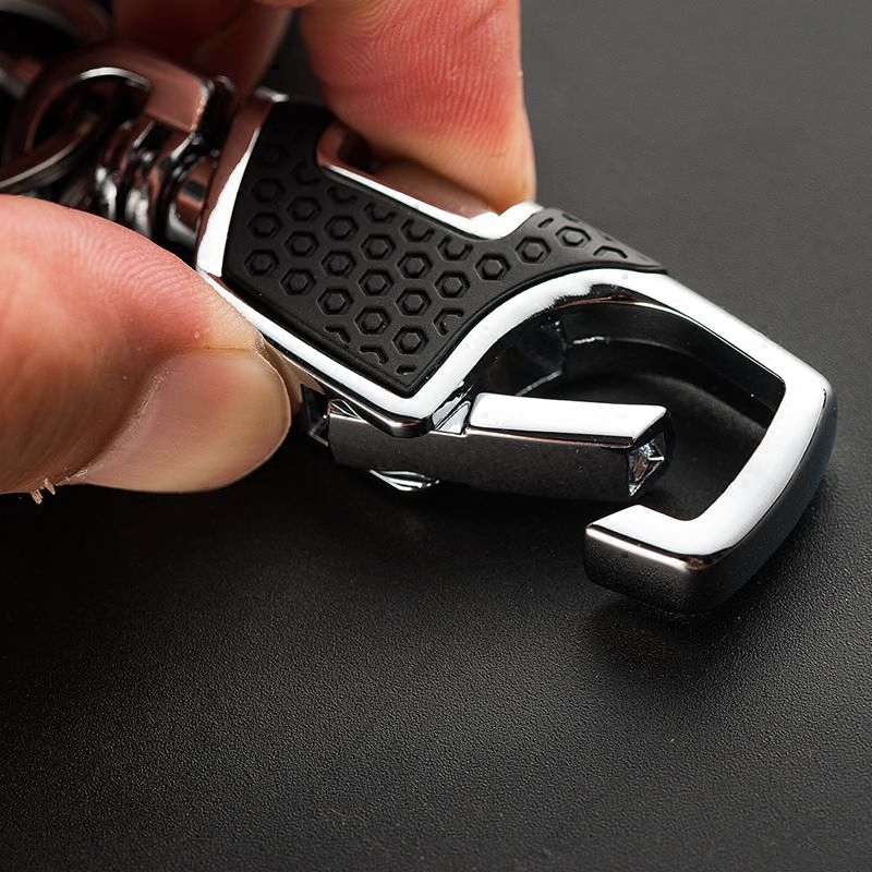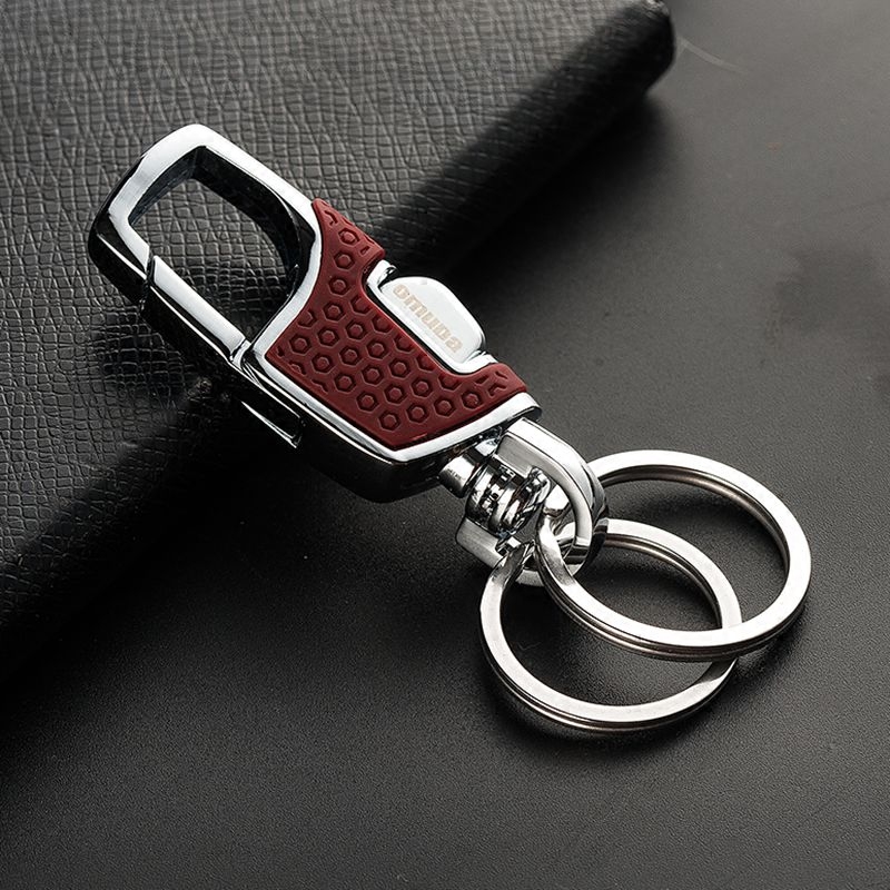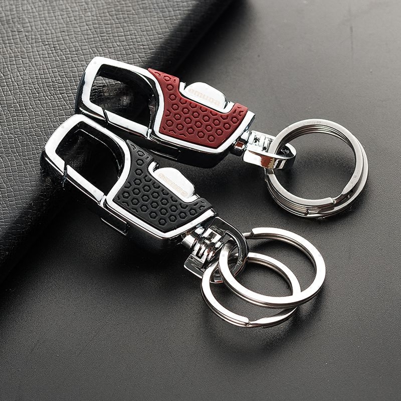 Men Business Waist Hanging Key Button Car Key Chain Pendant Gift Metal Double Ring Lock Spoon Simple Key Circle