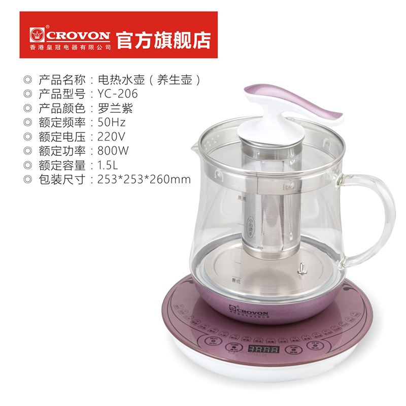 Crown wellness pot automatic thickened glass boiling kettle multifunction electric hot boiled tea maker CROOVON YC-206