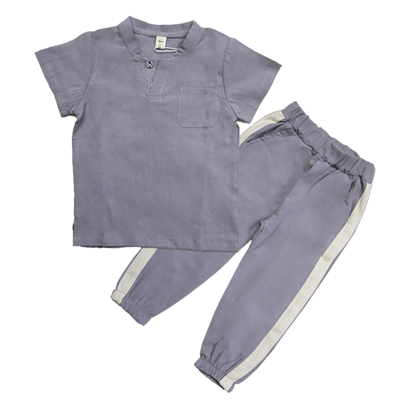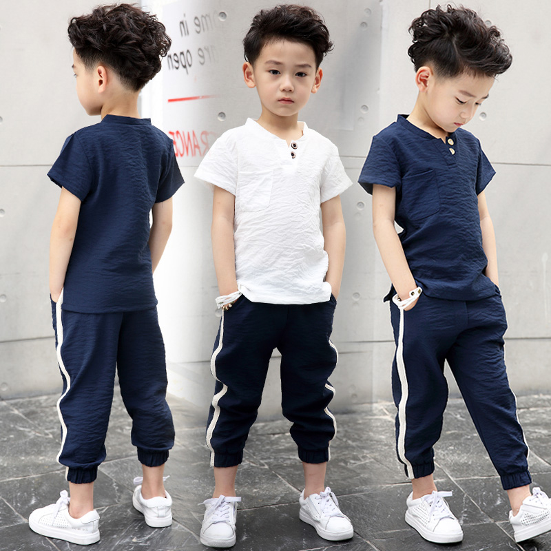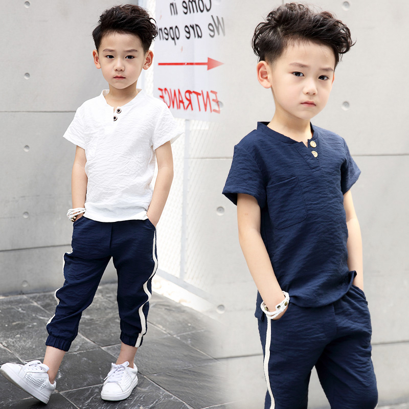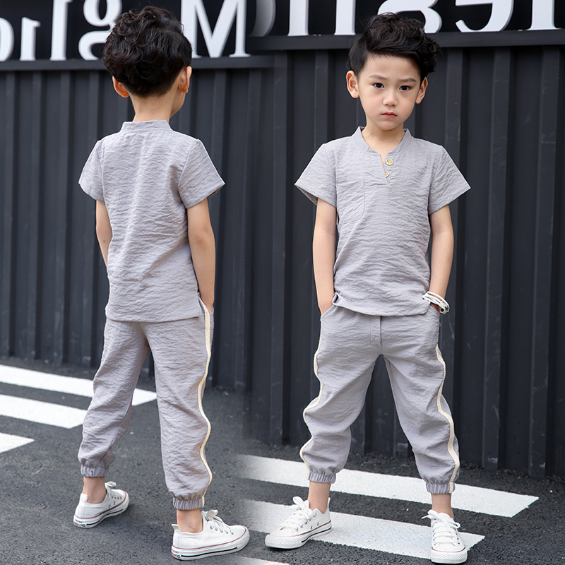 Boy suit 2022 new spring summer clothes Korean version fashion CUHK boy short sleeve cotton hemp children 7-10 years old two sets