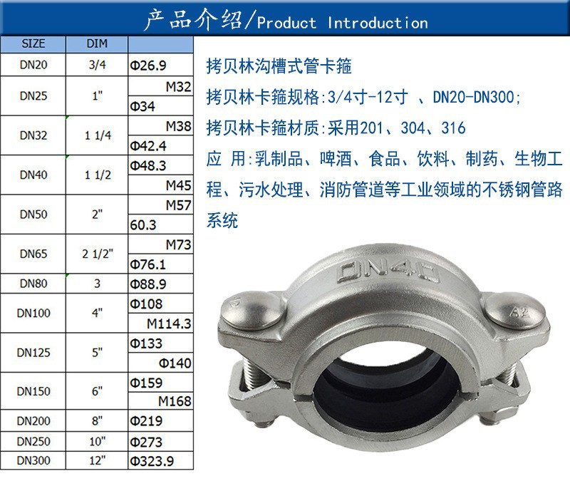 304 stainless steel copy forest clamp huff section hoop grooved clamp fire water treatment pipe hoop huff