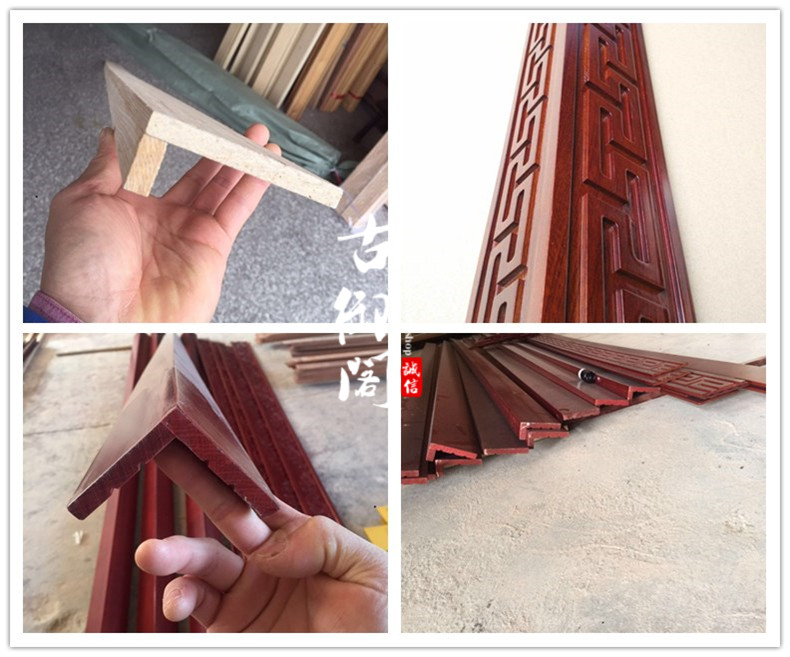 Chinese solid wood line carved waist line border line European style ceiling flat line TV background wall decorative strip wood strip