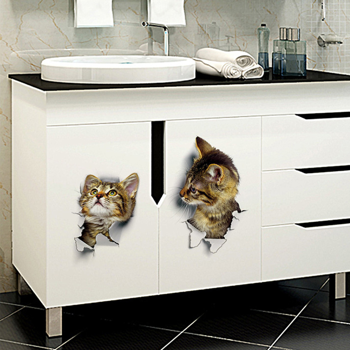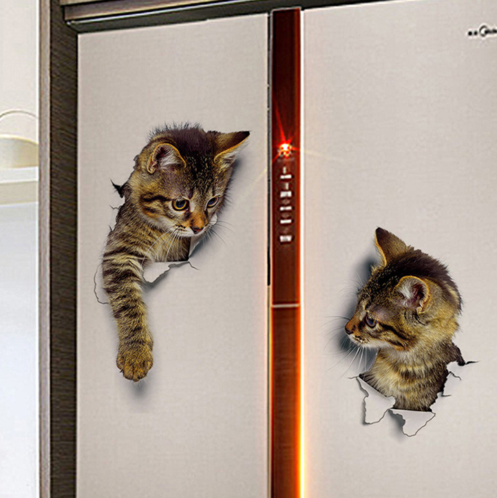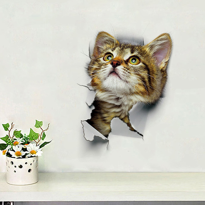 Cute Cat Mitten Wall Sticker Living-room Bedroom Children Room Decoration Stick Painting Wallpaper 3D Car Patch With Dongle Wall Sticker Toilet Sticker