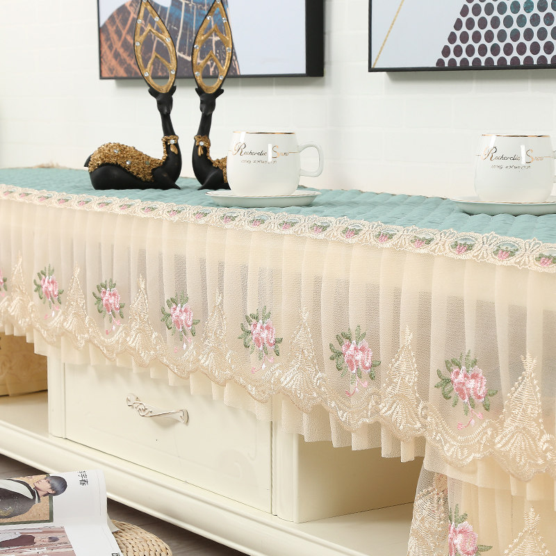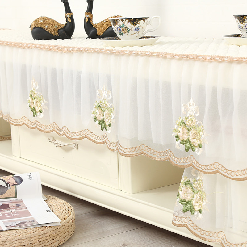 TV cabinet cover dust cover TV cabinet cover scarf cover cloth tablecloth European style pastoral fabric lace anti-slip mat dust cover