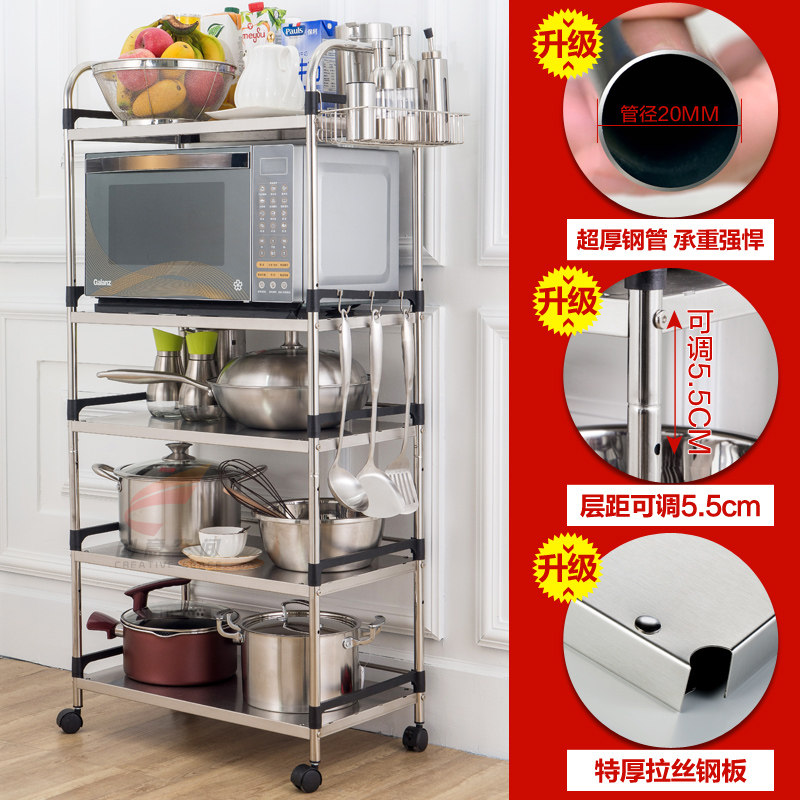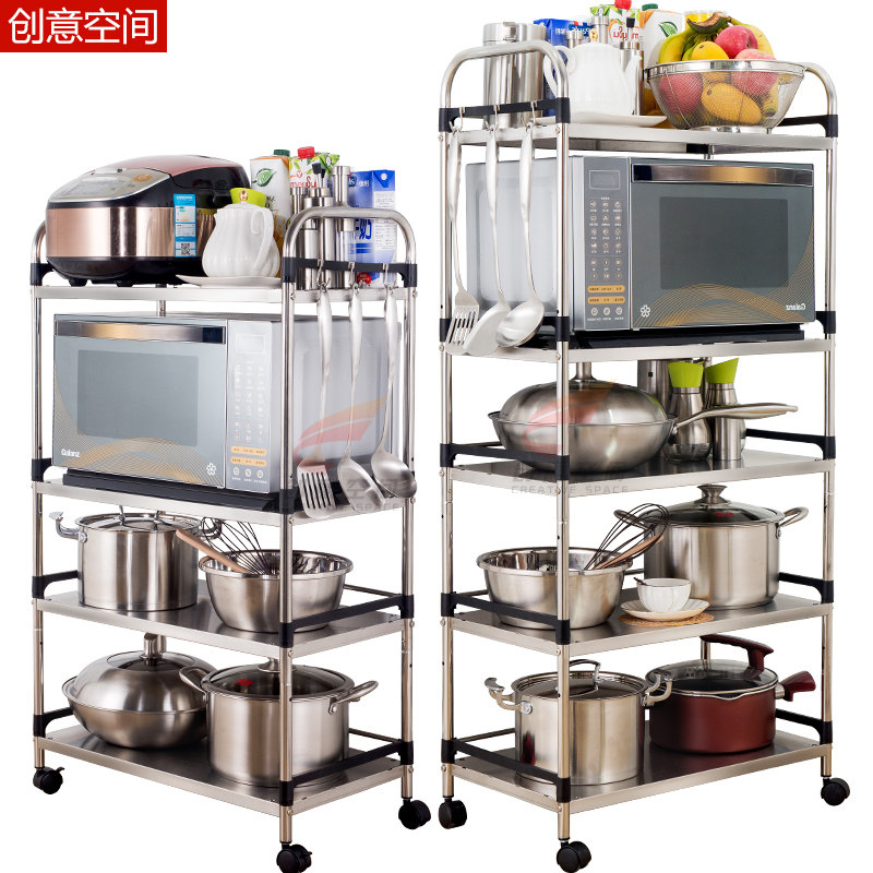 Stainless steel kitchen shelf floor multi-layer microwave oven shelf oven pot kitchen supplies storage rack