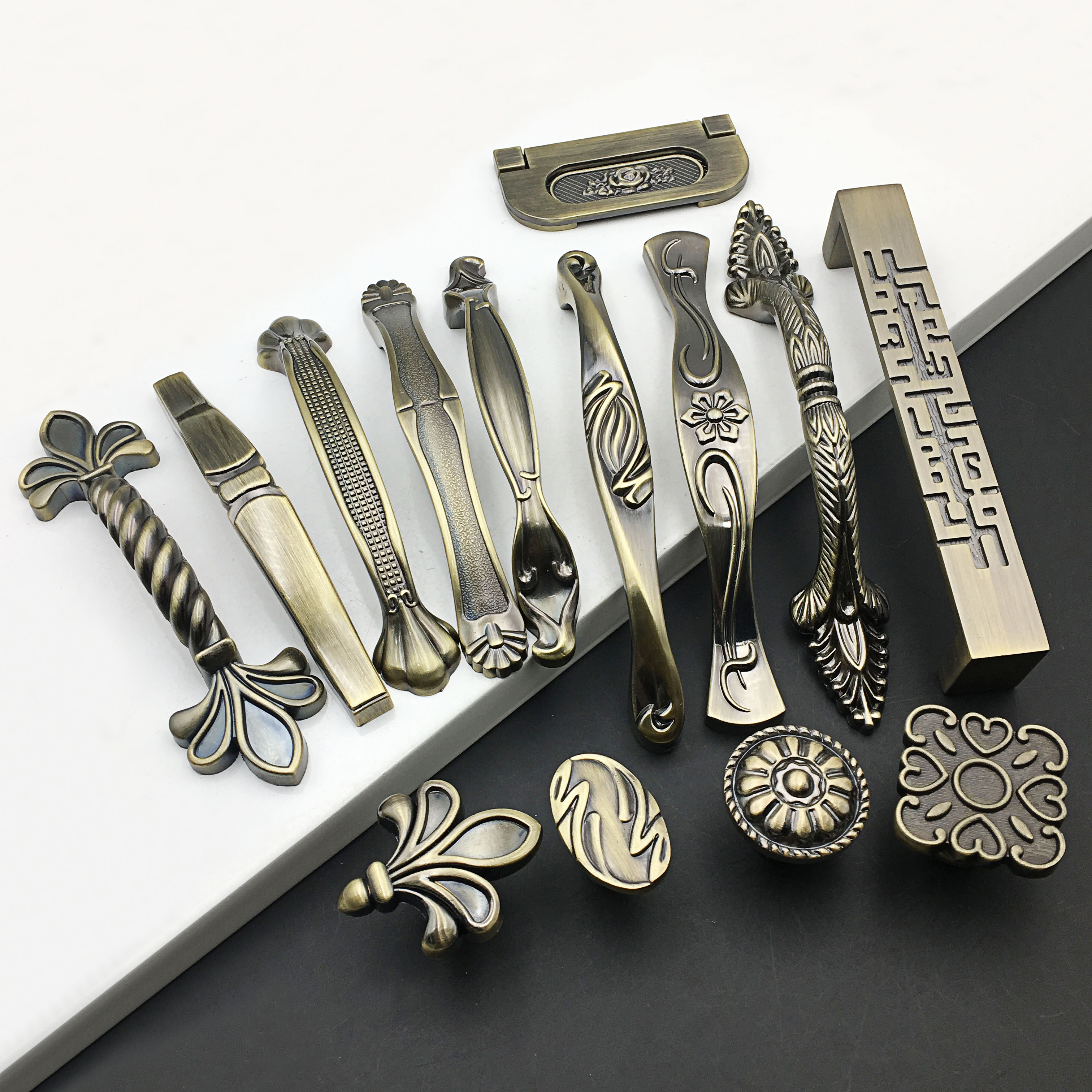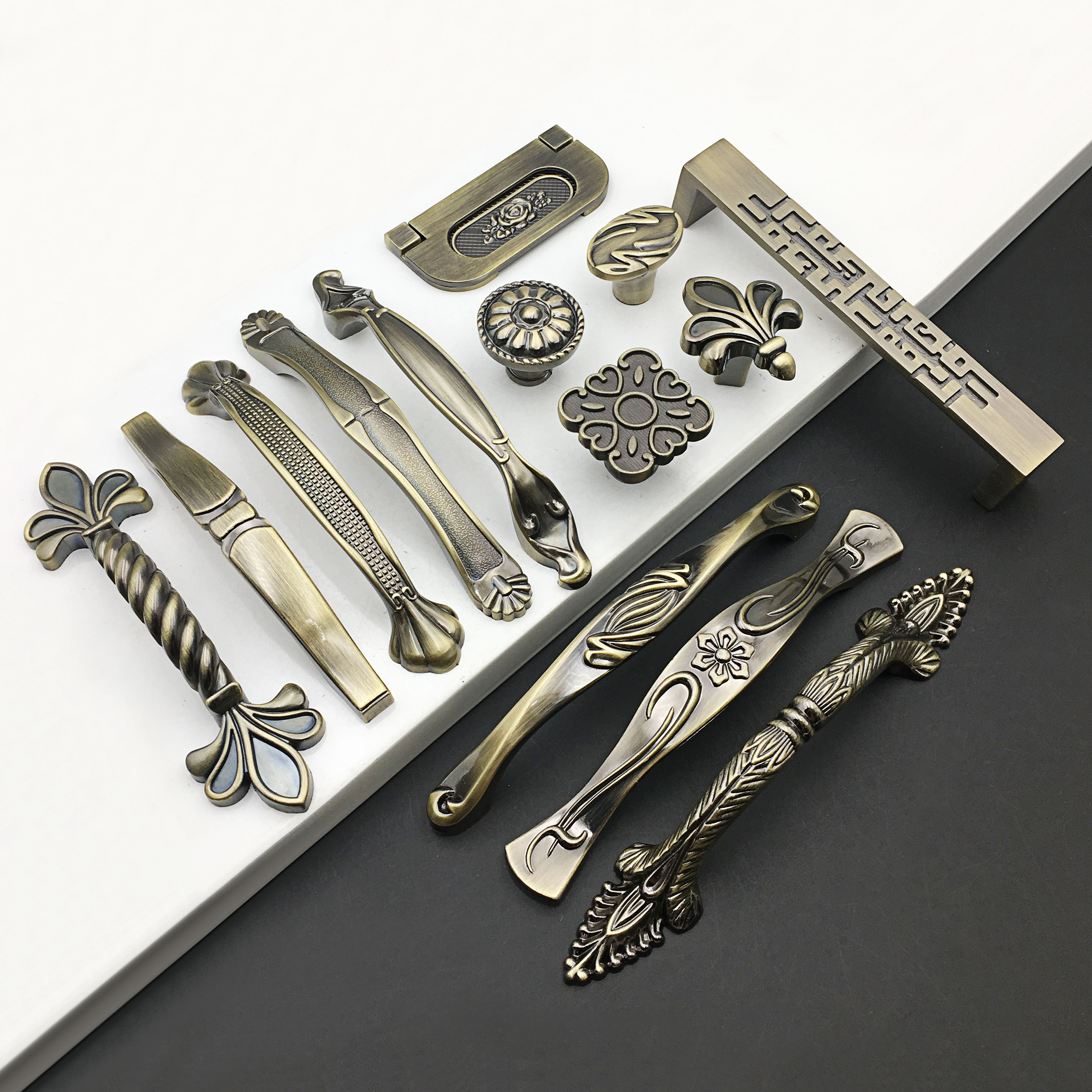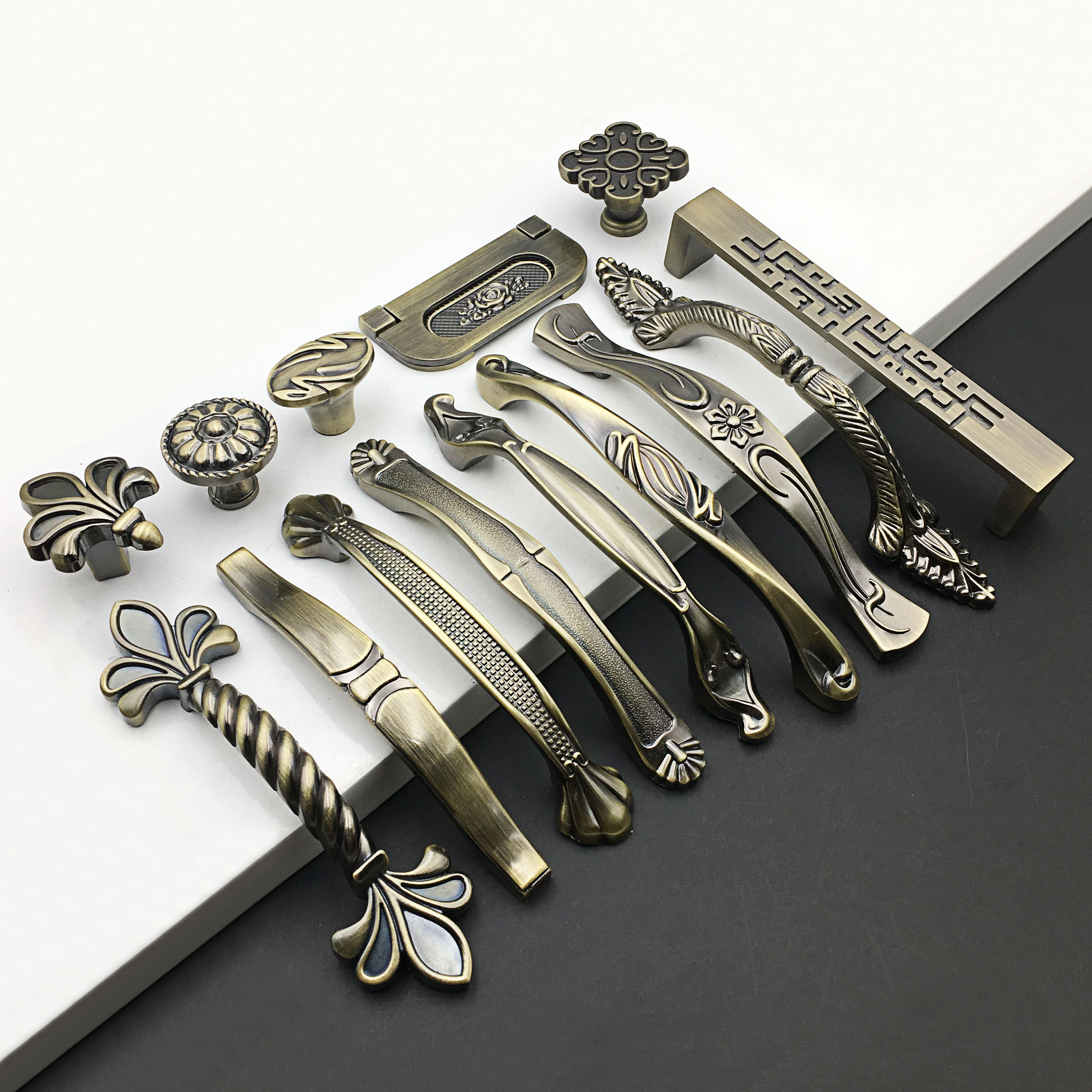 New Chinese American Wardrobe Door Green Ancient Bronze Handle Eurostyle Furniture Antique Bronze Drawer Cupboard Sub Hardware Handle-Taobao