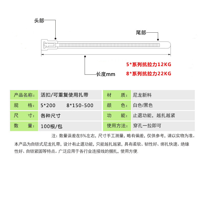 8x300mm reusable nylon cable ties can be loosely disassembled 100 live buckles 30 cm long garden binding