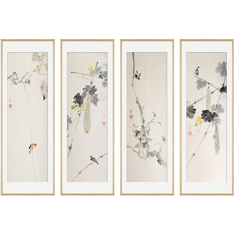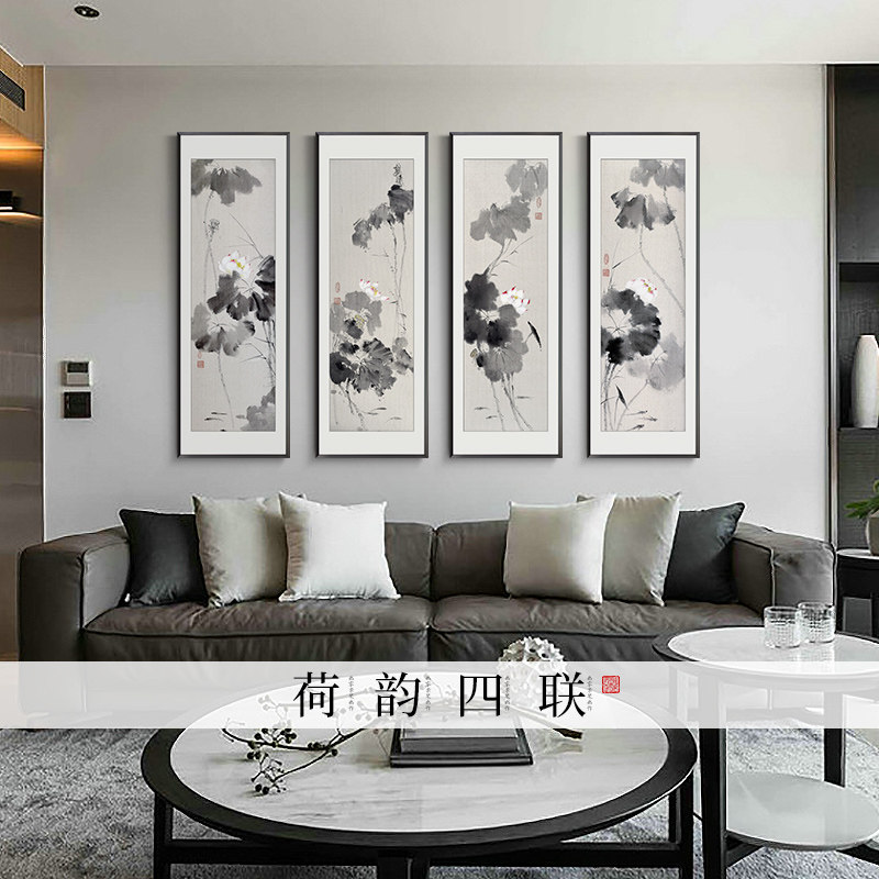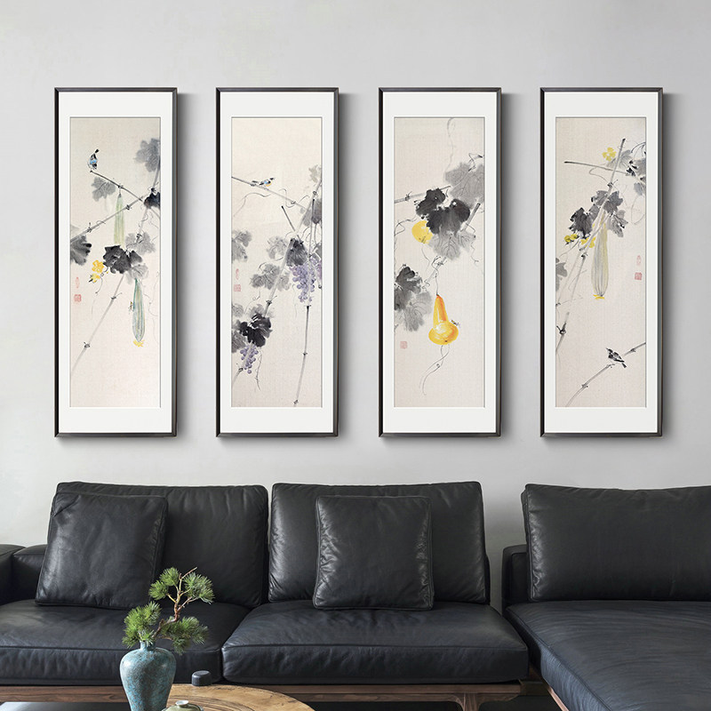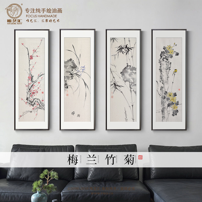 Hand-painted new Chinese decorative painting living room sofa background wall plum orchid bamboo chrysanthemum hanging painting Chinese ink painting flower and bird oil painting