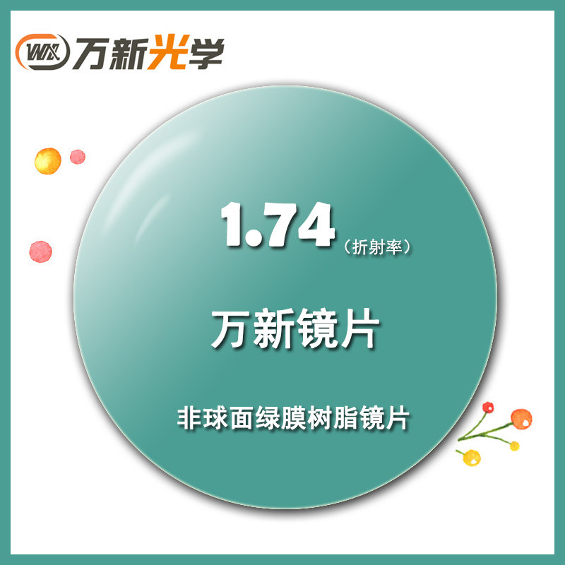 Wanxin lens 1 74 height number ultra-thin resin aspherical green film myopia eyeglass lenses