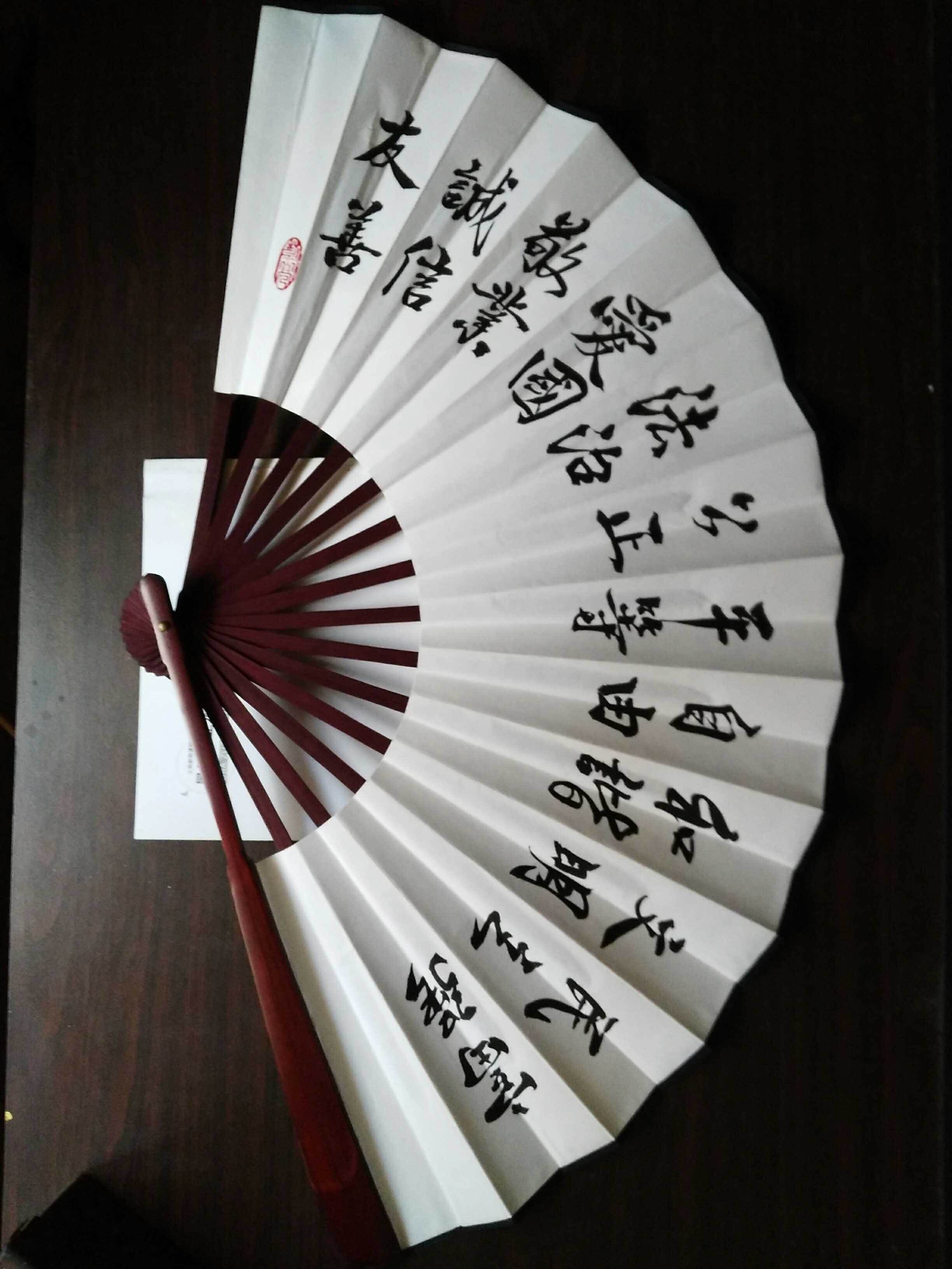 Handwritten Xuan paper folding fan socialist core values 24 words Five yunshan people pro-scribe true handwriting