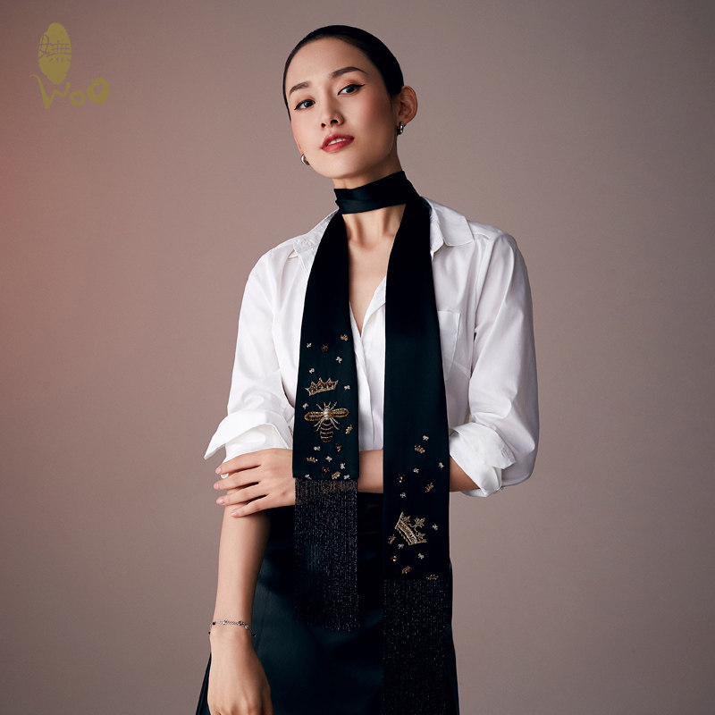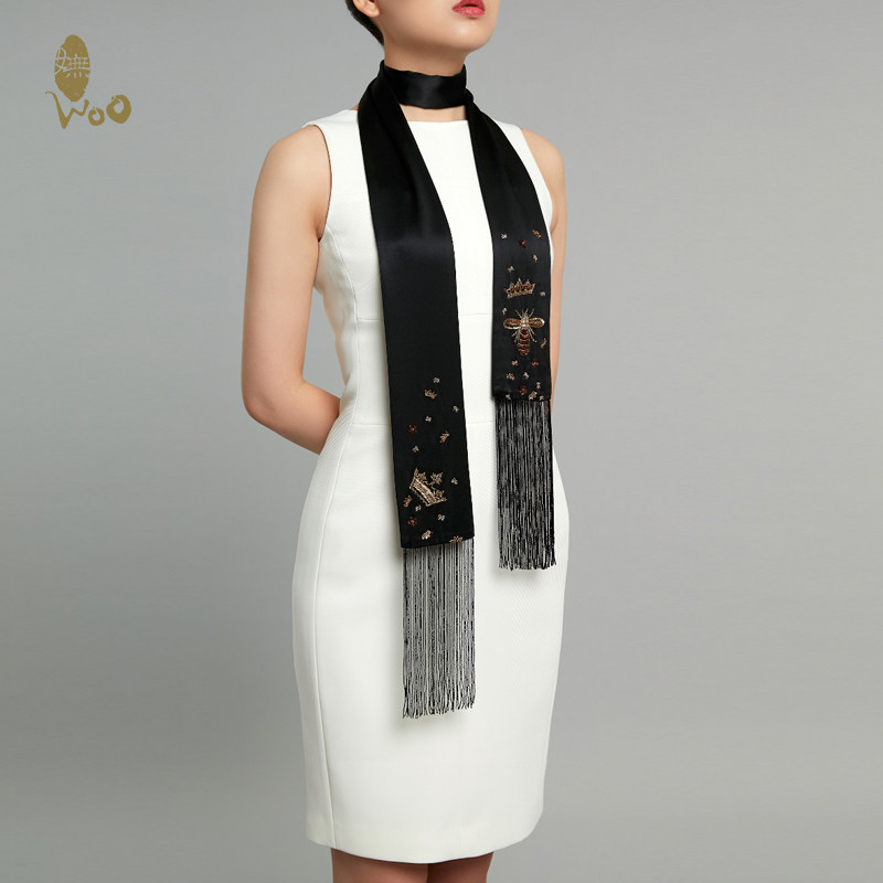 woo woo aristocratic meme original true silk narrow strip small silk scarlet spring autumn style mulberry silk little scarves