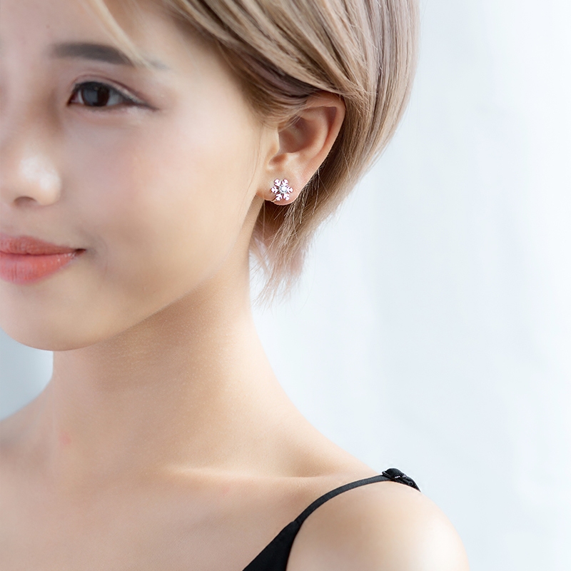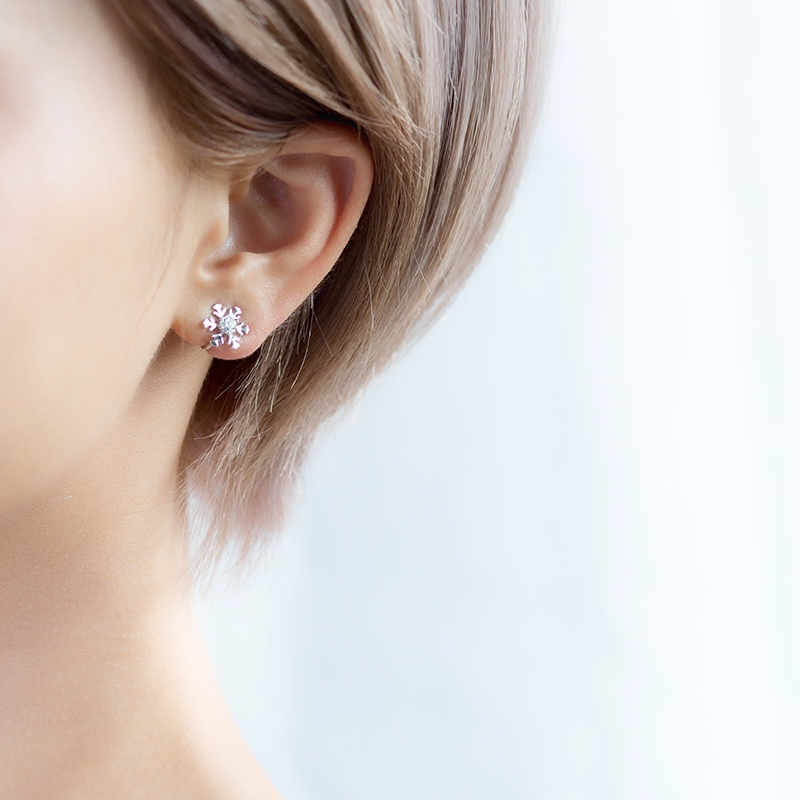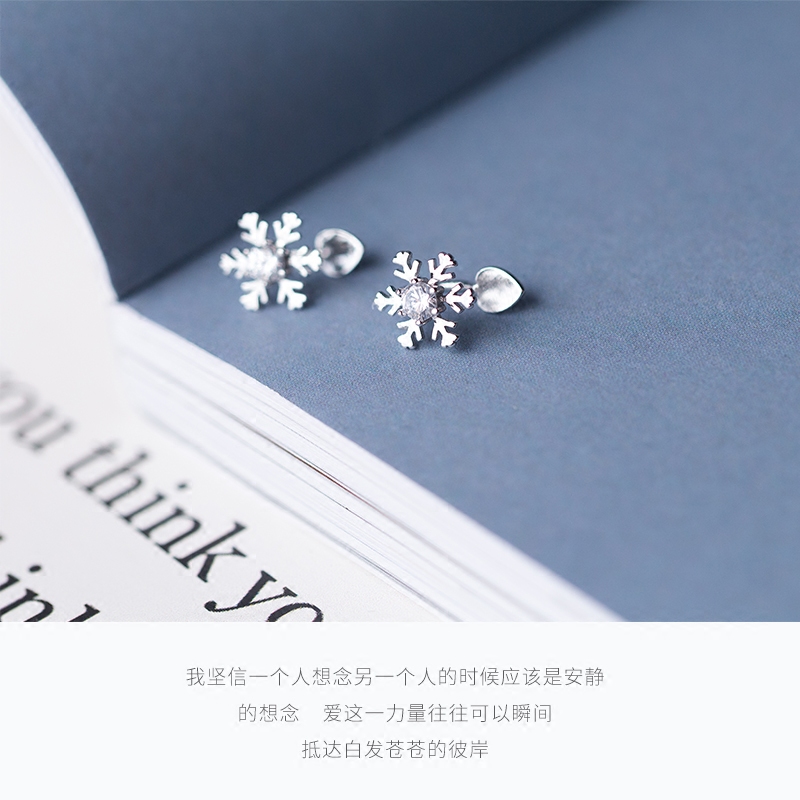 Love Rocky s925 silver ear clip female Korean version of small fresh diamond snowflake without ear pierced ear needle sweet flower jewelry