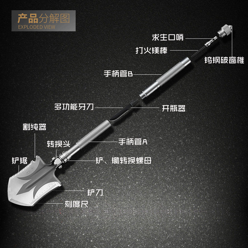 Sapper shovel Multi-functional outdoor Chinese military special military shovel German military version Manganese steel folding car shovel