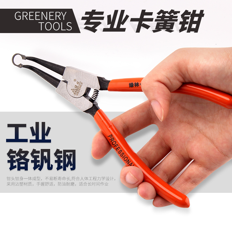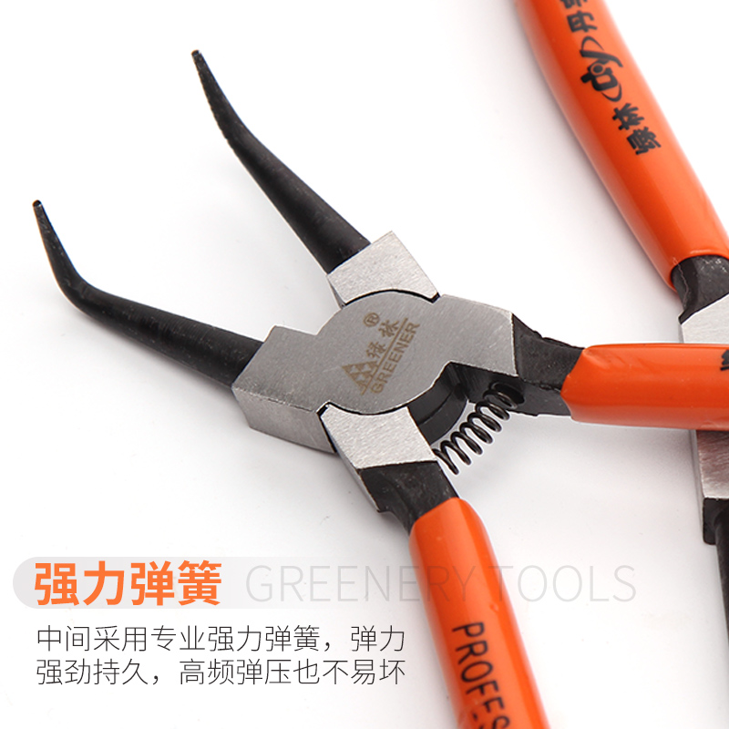 Green Forest Snap Spring Pliers 7 Inch C Type Clasp Pliers Multifunction Snap Ring Caliper Card Yellow Pliers External Inner Straight Outer Bend Inner Bend