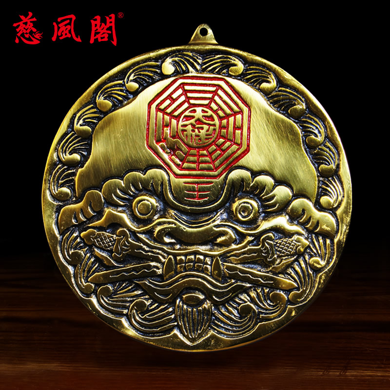 Feng Shui Penthouse Bronze Veterinary Head Gossip Lion Bite Sword Pendant Bronze Lion's Door Decorated Home Tiger Head Card Pendulum