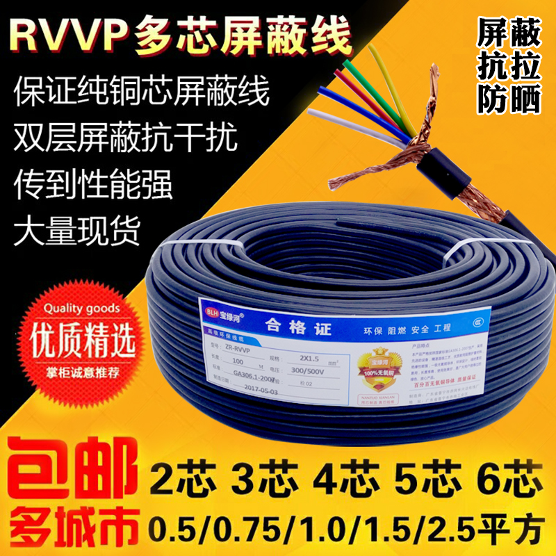 Pure copper RVVP shielding line signal line control line 2 3 4 5 6 core 0 5 0 5 0 75 1 1 5 square