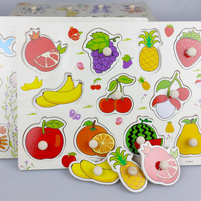 Baby hand grasp cognitive board Meng's puzzle children wooden nail-beneficial intellectual puzzle early teaching toys 2-3-4 years old