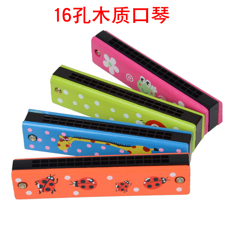 Wooden Harmonica Colorful 16 holes for children to play music Baby toys 1-3-5-7-year-old baby organ instrument-Taobao