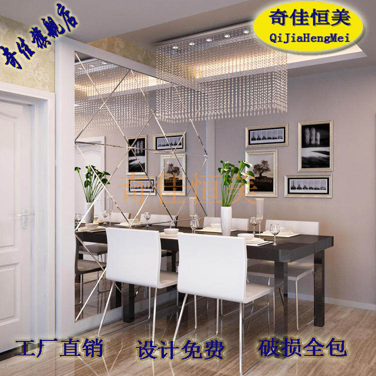 Custom decorative art glass fight mirror TV background wall mirror diamond-shaped simple film and television restaurant tea mirror silver mirror