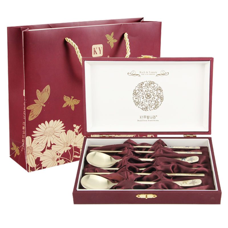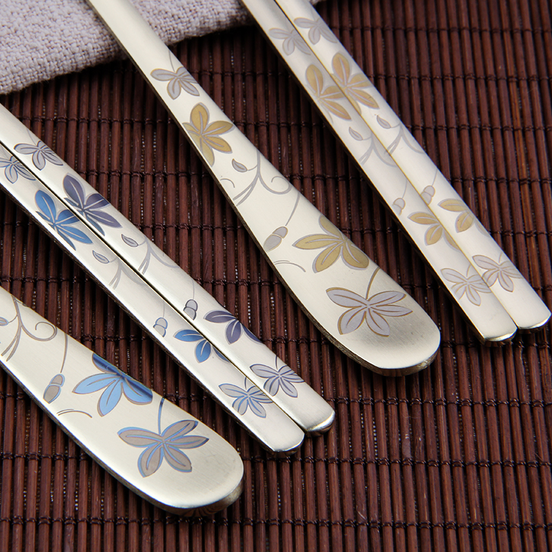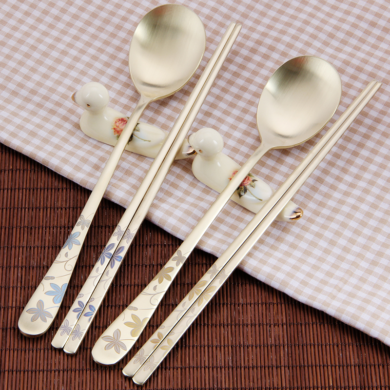 South Korea Stainless Steel Chopsticks Spoon Suit Pins Wind Gold Long Handle Spoon Han Style Flat Chopsticks Home Lovers Cutlery