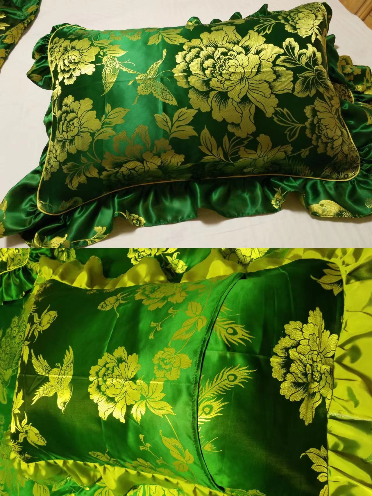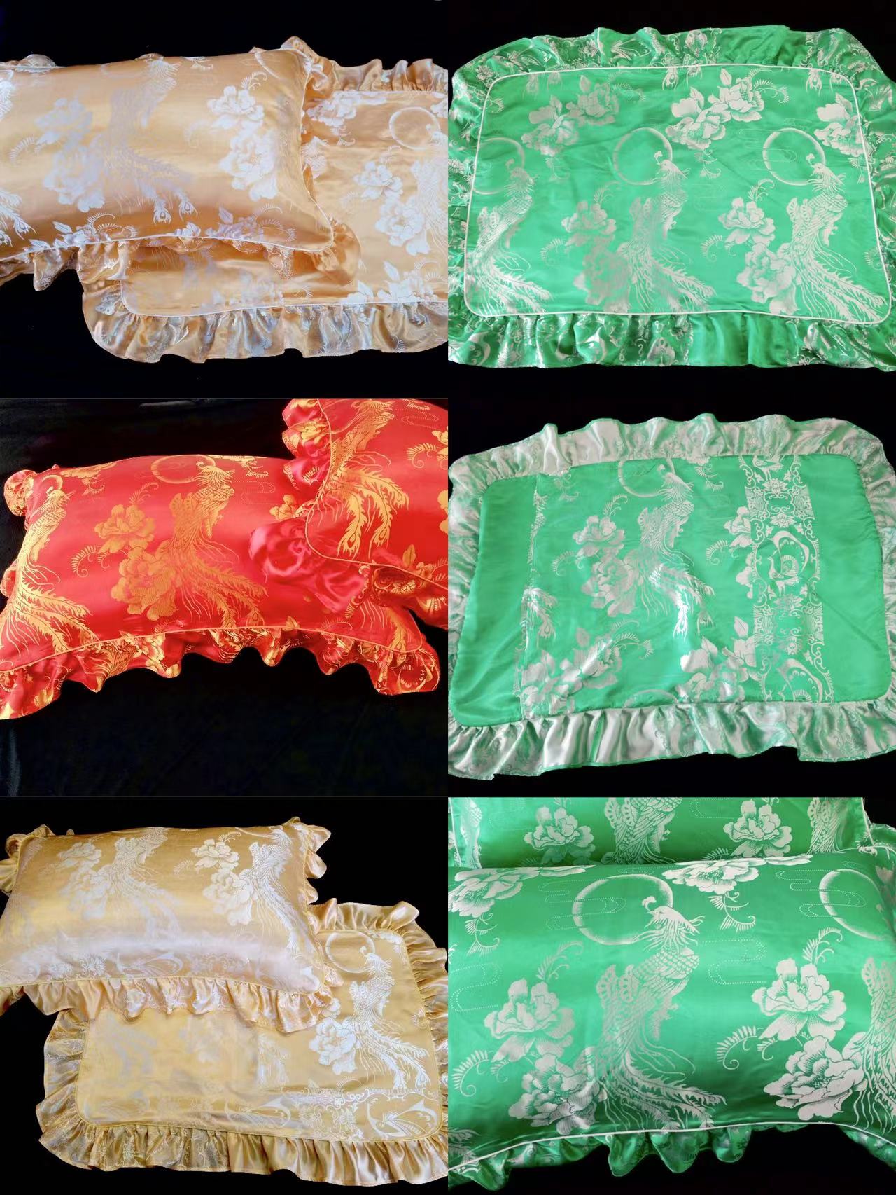 Red Genuine Silk Roses Flowers Each Color Phoenix Pair Red Double Pillow Green Bifacial Flowers Bird pair of stores Quilt Can Customize All Kinds Of Size Pillow Headgear Each Color Phoenix Lace Bifacial Pillow Pair of each color foot cover