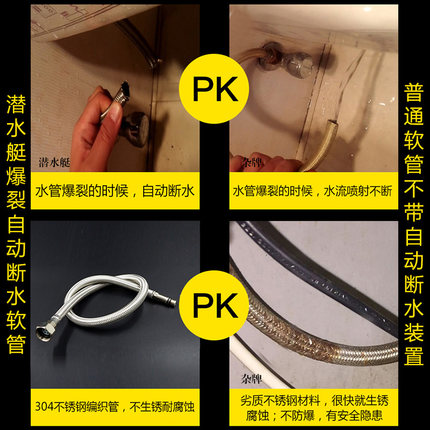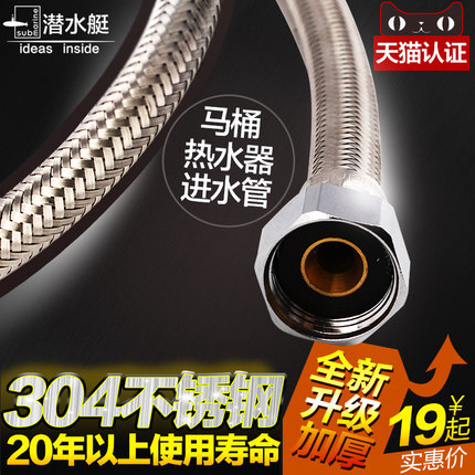 Submarine toilet inlet hose 304 stainless steel 4-point angle valve water heater hose upper water pipe hot and cold explosion-proof