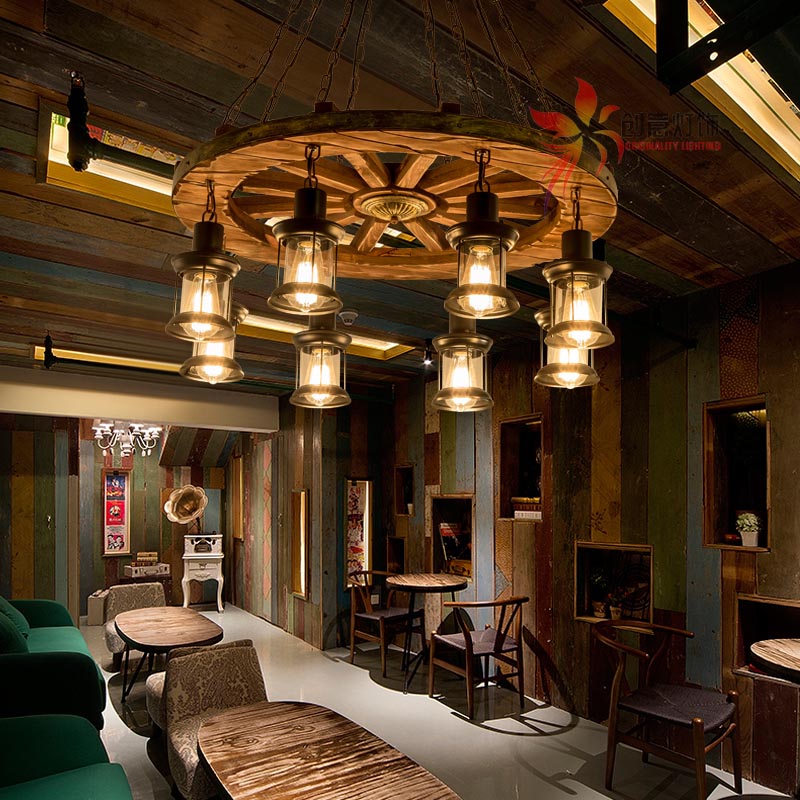 American country retro ship wood chandelier industrial style creative nostalgic bar decoration diffuse coffee dining room wood lamps