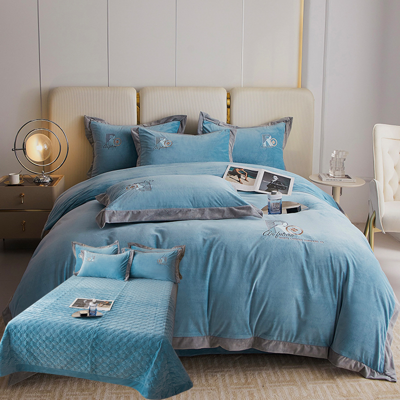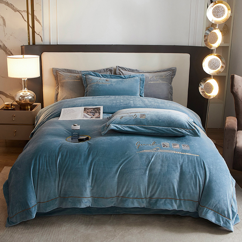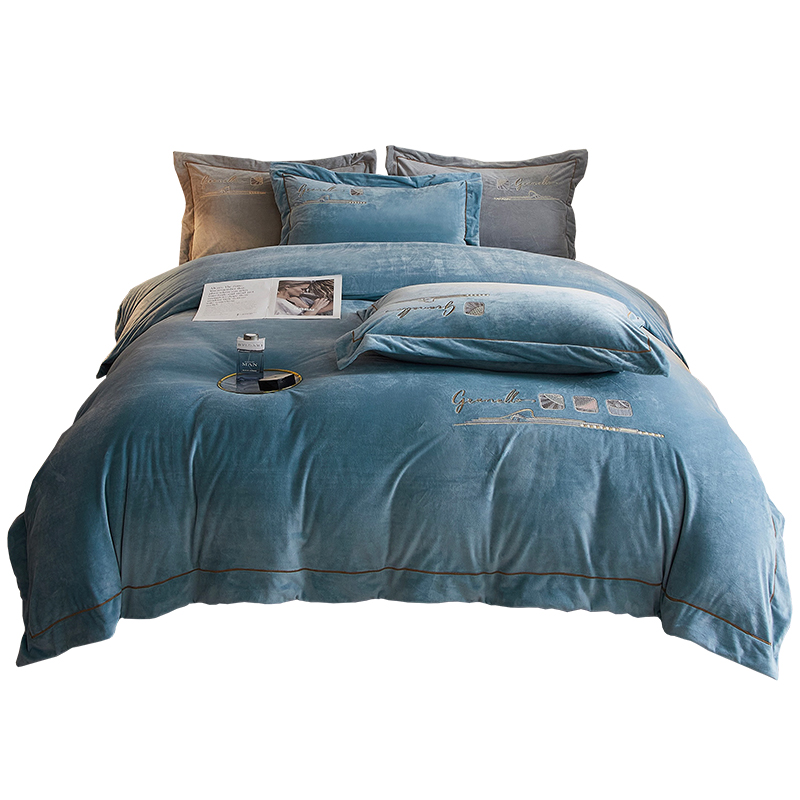 High-end cream bed cover four pieces of winter thickening double-sided velvet clamp sheets for cotton