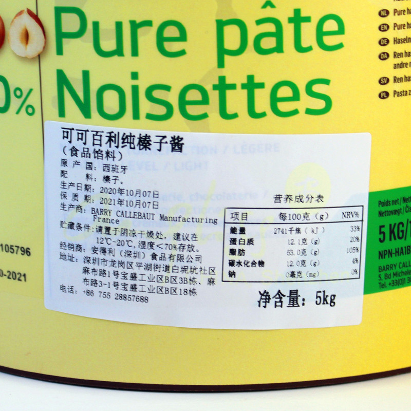 French Coco Baileys Hazelnut Butter 50% 100% Cocoa Baileys Rich Hazelnut Butter 5kg bucket