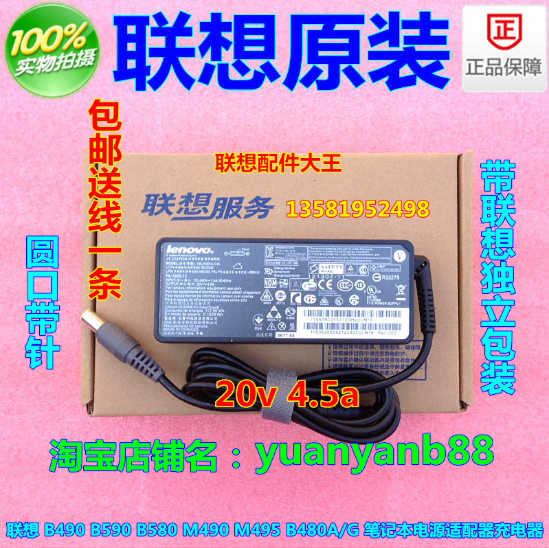 ThinkPad T430 T430 T530 L430 90W L430 4 5A Round mouth 3-hole power supply adapter 45N0310