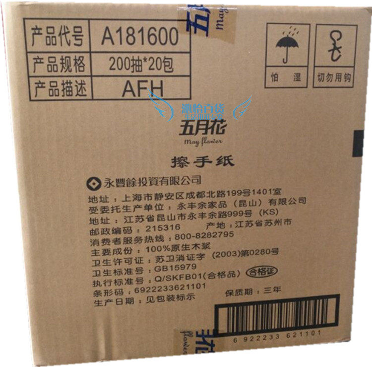Mayflower A181600 Double Laminated Embossed Super Tough 200 Pumped Toilet Paper Entire Box 20 Packs Zhejiang Zhejiang Shanghai Yu