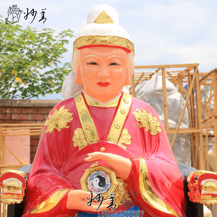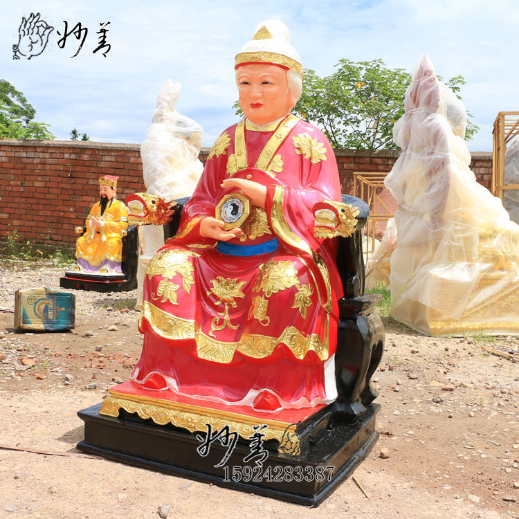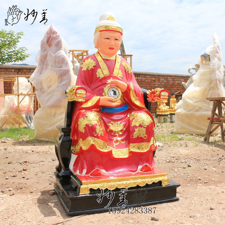 1 3 m Vision Bride's Statue of the Ming Mu Jun Eye Wang Grandmother Stuck Gold Color Painted Glass Fiber Resin Buddha Statue