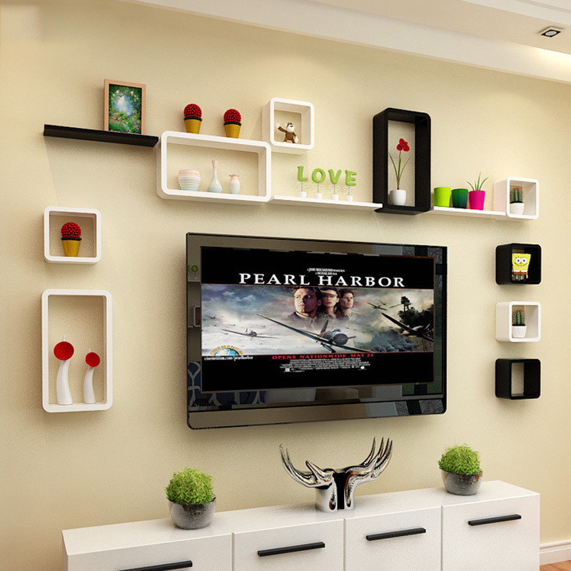 Wall shelf hole-free bedroom creative lattice living room wall hanging wall video TV background wall decoration