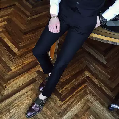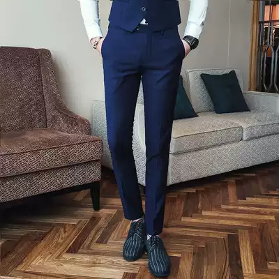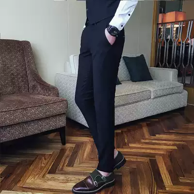 Trousers men's slim-fit British casual pants free ironing business long pants Youth Korean fashion solid color trend career