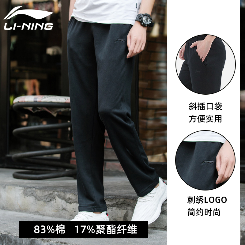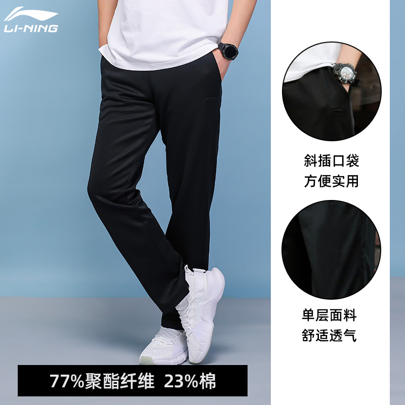 Li Ning Sports Pants Men's Straight Barrel Loose Men's Pants Breathable Summer Running Knit Comfort Casual Pants Men Long Pants