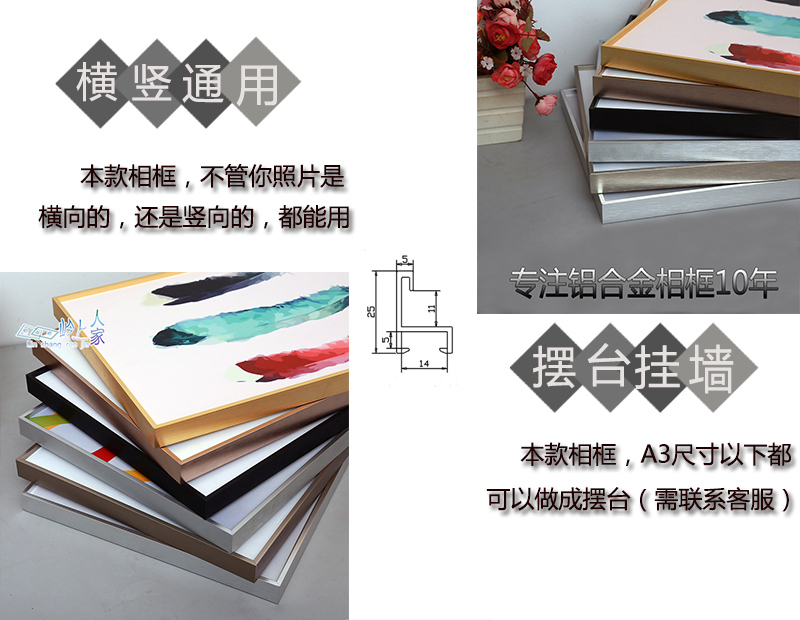 Aluminum alloy photo frame narrow side solid picture frame puzzle frame writing true advertising frame poster frame custom
