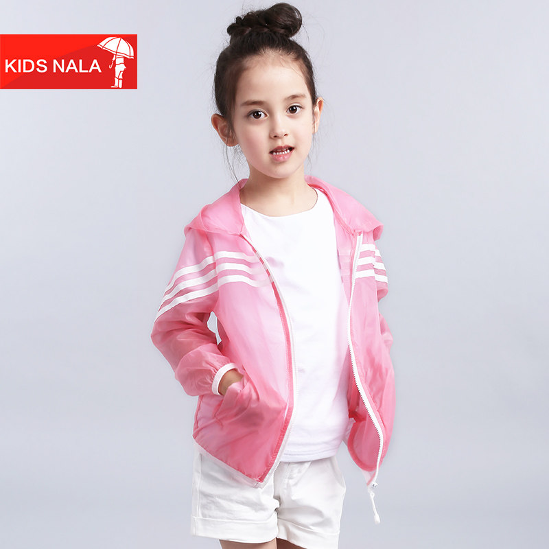 Girls thin coat summer wear ultra-thin breathable sunscreen hooded medium and large children's clothing Sports children's skin coat foreign pie