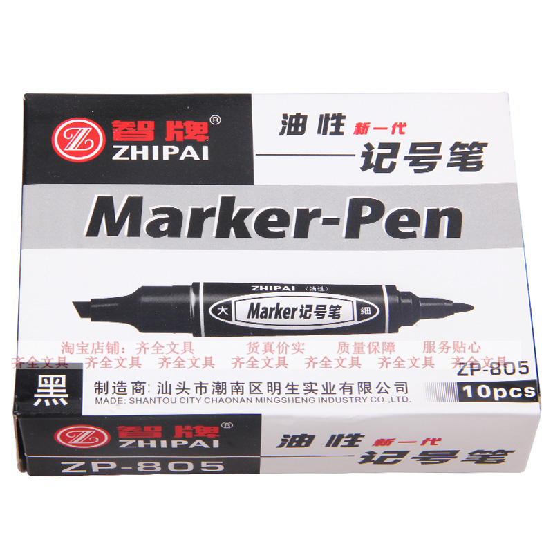 Zhi brand ZP805 large double-head marker pen box head oily pen logistics express big head pen can not wipe off pen stationery