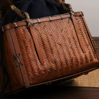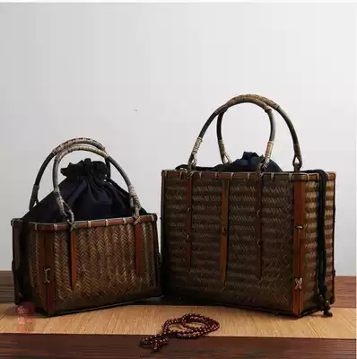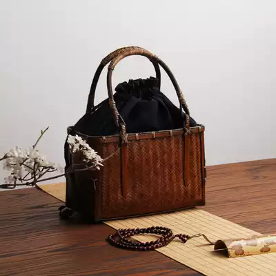 Handmade retro Japanese bamboo woven tea bag Hand carry bag Tea ceremony utensils Portable storage bamboo bag Bamboo basket bag