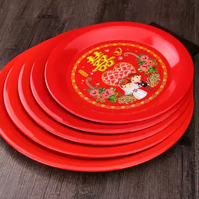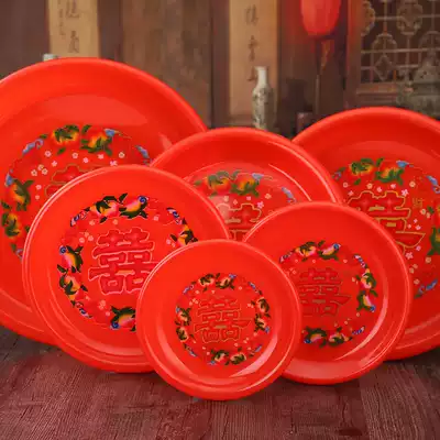 Wedding fruit plate, wedding red happy plate, candy plate, fruit plate, melon seed plate, fruit plate, plastic round shallow plate, large