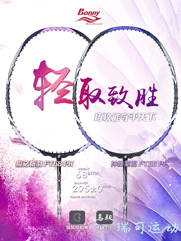 Bonny Polyu lack process new purple 68P powder 68K single double badminton racket high cost
