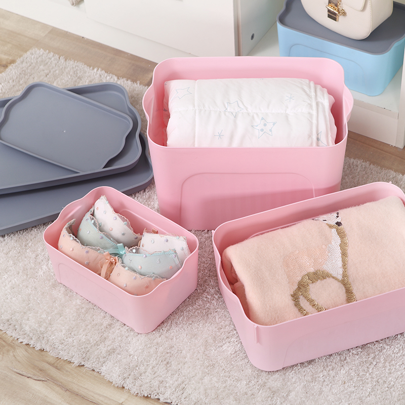 Storage box Plastic finishing box Clothing storage box Wardrobe storage box Desktop finishing box Large, medium and small 3-piece set