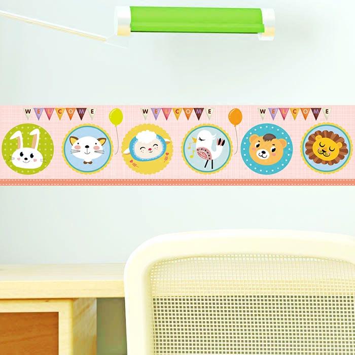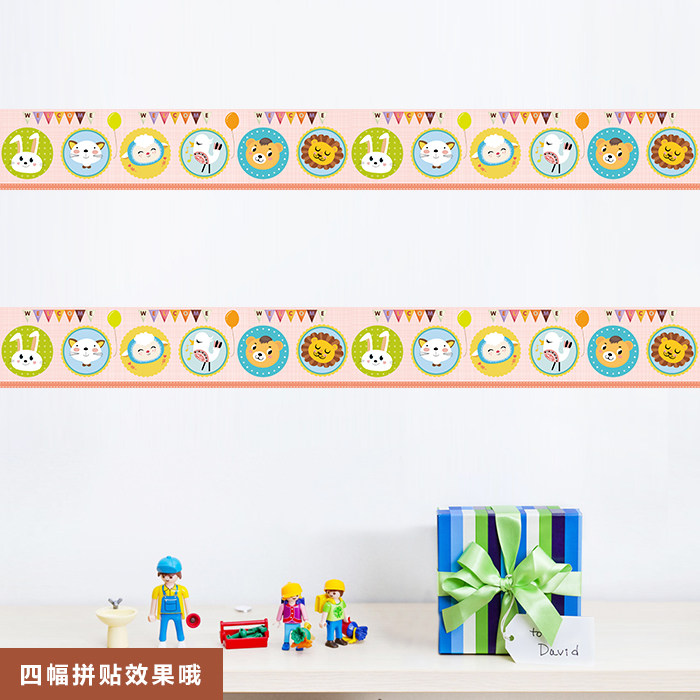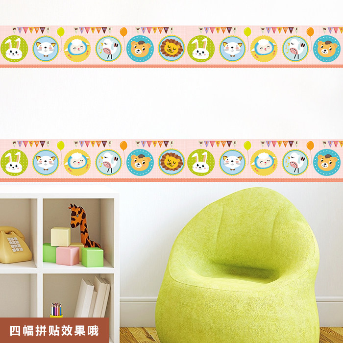 Wall sticker Animals cartoon Children's room wallpaper Kindergarten decoration stickers Painted Waist Line Self-Glued to cover Hostel