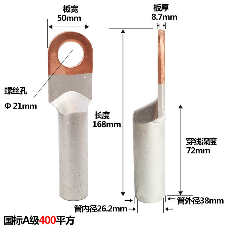 DTL-400 squared copper aluminium nose copper aluminium transition nose wiring terminal aluminium cable connector national scale A level