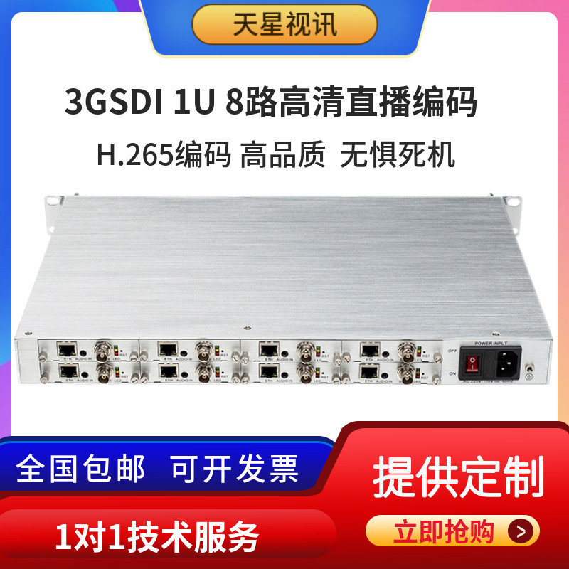 8-way HD SDI video live encoder H 265 Push streaming LAN campus TV broadcast server