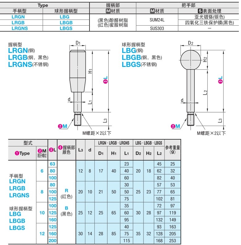 Fixed grip handle LBG6 8 10 12-63 80-100 125 160 200-R B