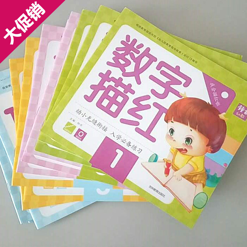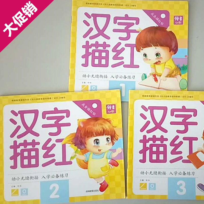 Digital Chinese characters sketching this full set of 12 copies of young and small bridging Kindergarten pinyin Chinese characters sketch Chinese characters Children's digital pinyin sketch Red Benji Kindergarten full range of practice characters Benji character Benji character postscript 3-6 years old