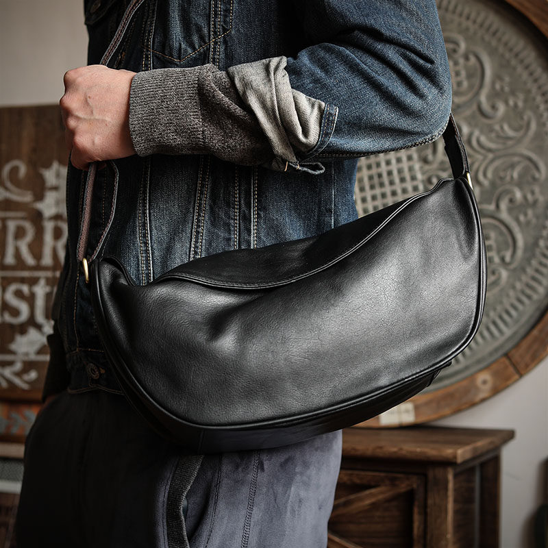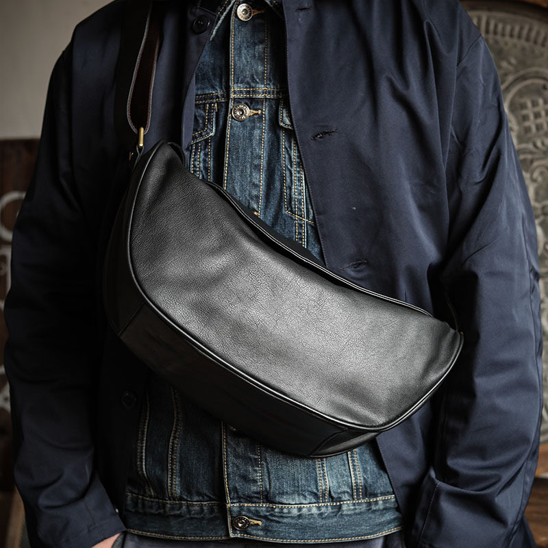 Ami Khaji men's chest bag Japanese leather motorcycle dead fly bag leather bag casual men's soft bag shoulder messenger bag