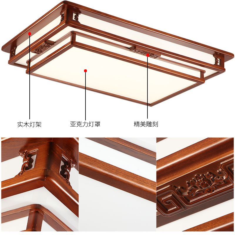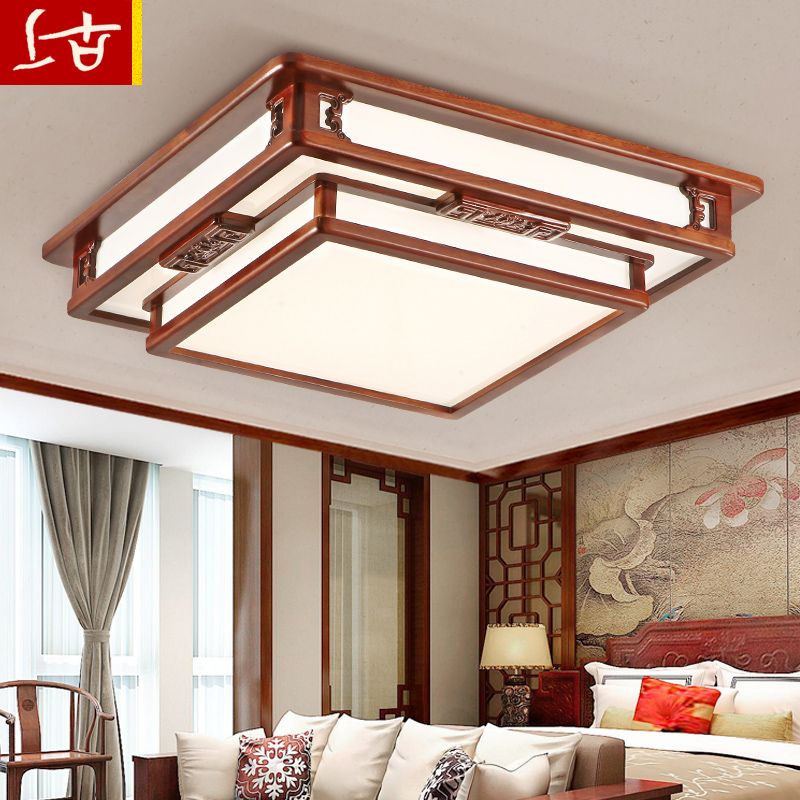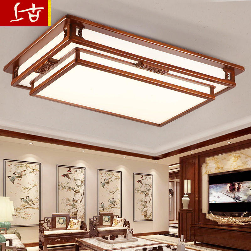 Sapele Chinese-style lighting package ceiling lamp combination solid wood lamp set LED living room lamp antique complete set of lamps